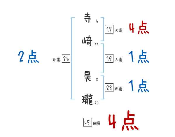 家系が持つ宿命的な運勢を表します。祖先から受け継いだ苗字ですので自分の力が及びません。家柄を象徴します。