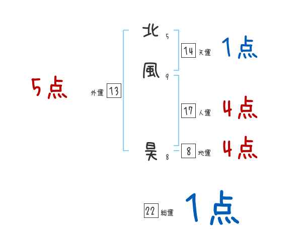 天運![]() | 北風昊さんの天運は14画の1つ星!人に対して優しいがストレスを溜め込みがち。人間関係のトラブルを避けるよう気をつけましょう。 家系が持つ宿命的な運勢を表します。祖先から受け継いだ苗字ですので自分の力が及びません。家柄を象徴します。 |