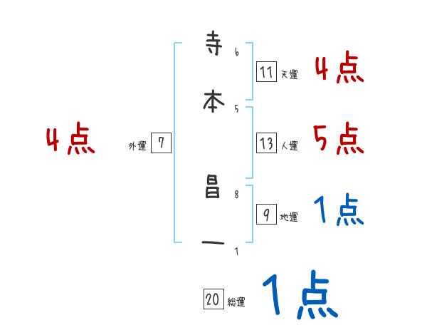 寺本昌一さんの画数の鑑定結果