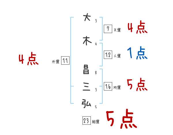 大木昌三弘さんの画数の鑑定結果