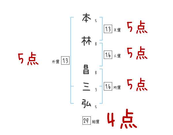 本林昌三弘さんの外運は13画の5つ星