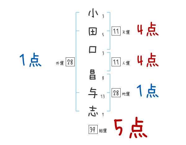 小田口昌与志さんの画数の鑑定結果