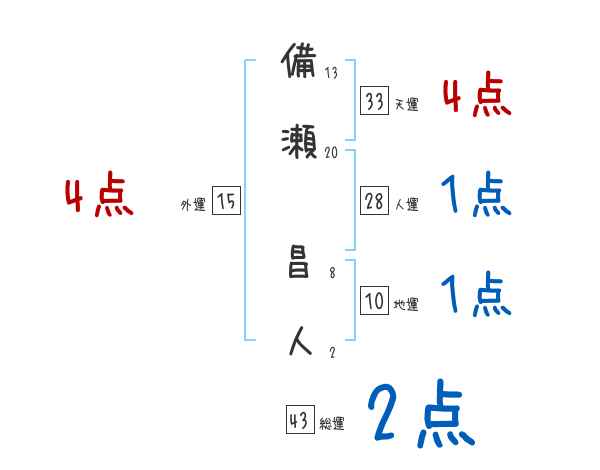 外運![]() | 備瀬昌人さんの外運は15画の4つ星!人徳があり出世する。順調に物事を進め円満な人生。 生活面を象徴する運勢です。外部から受ける影響力を表し、結婚運、家庭運や職場、環境への順応性を表します。 |