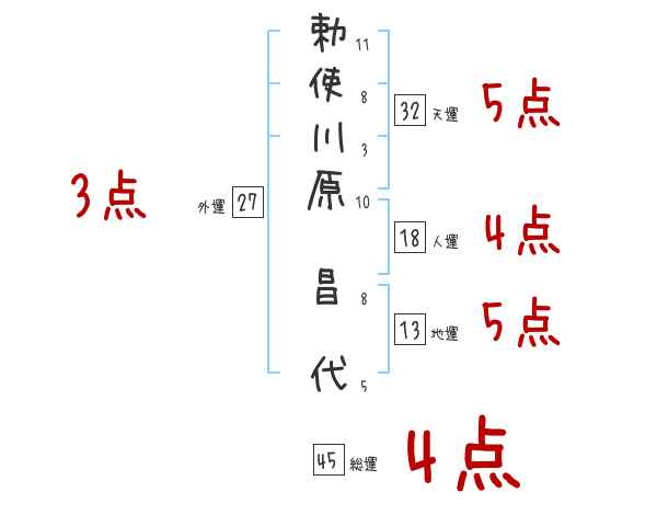 天運![]() | 勅使川原昌代さんの天運は32画の5つ星!柔軟性があり成功する。チャンスが多く金運が良い。 家系が持つ宿命的な運勢を表します。祖先から受け継いだ苗字ですので自分の力が及びません。家柄を象徴します。 |