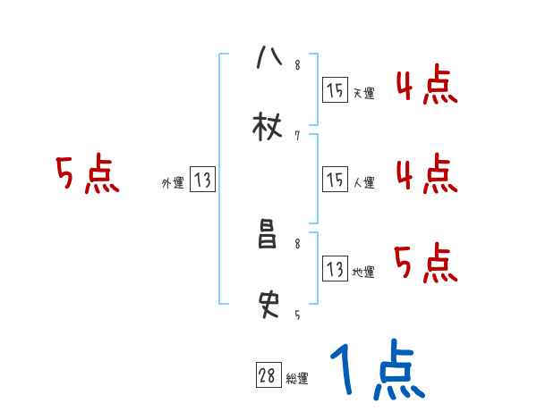 八杖昌史さんの画数の鑑定結果