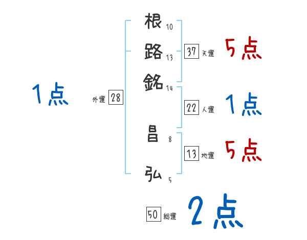 根路銘昌弘さんの画数の鑑定結果