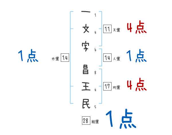 一文字昌王民さんの画数の鑑定結果