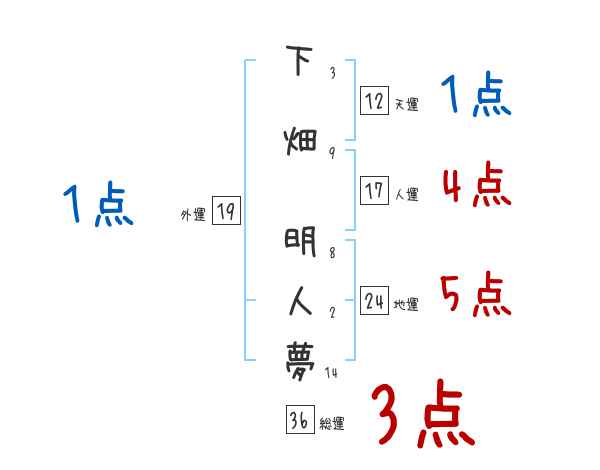 総運![]() | 下畑明人夢さんの総運は36画の3つ星!先見性が豊かです。多少神経質で苦労することも。 あなたの人生を表す1番重要な運勢です。生涯を通じて影響する総合運となり、主に50歳以降の晩年期に影響を及ぼします。 |