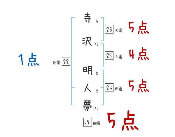 寺沢明人夢さんの画数の鑑定結果
