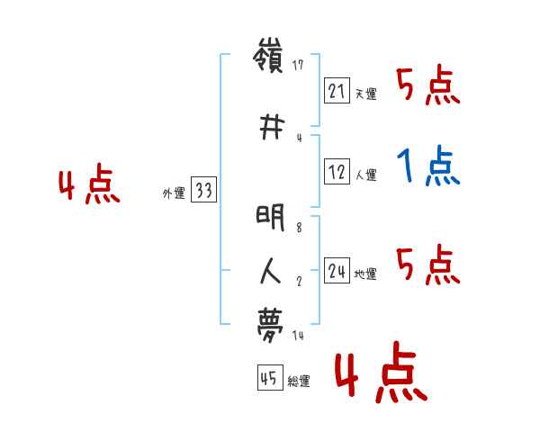 嶺井明人夢さんの画数の鑑定結果