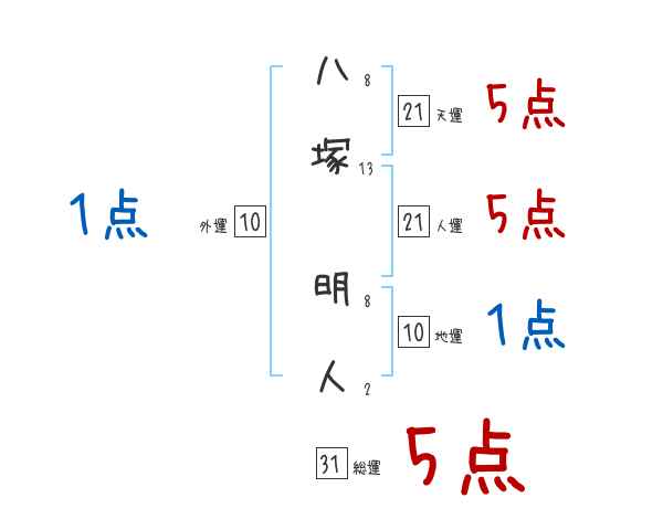 八塚明人さんの画数の鑑定結果