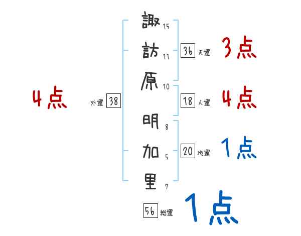 諏訪原明加里さんの画数の鑑定結果