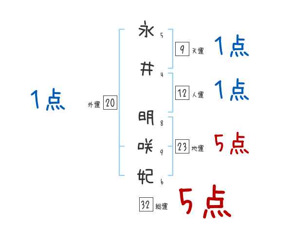 総運![]() | 永井明咲妃さんの総運は32画の5つ星!柔軟性があり成功する。チャンスが多く金運が良い。 あなたの人生を表す1番重要な運勢です。生涯を通じて影響する総合運となり、主に50歳以降の晩年期に影響を及ぼします。 |