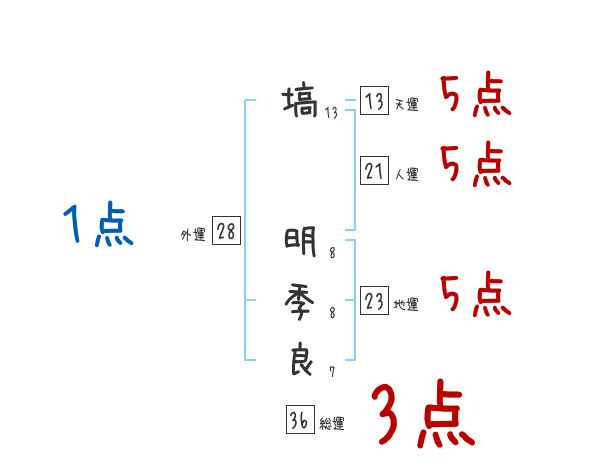 塙明季良さんの画数の鑑定結果