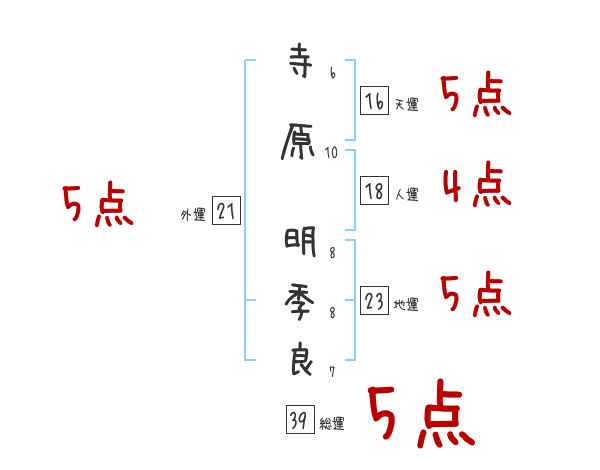 寺原明季良さんの画数の鑑定結果