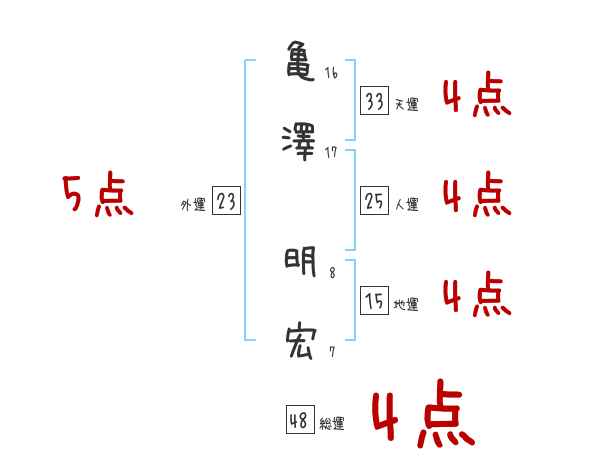 亀澤明宏さんの画数の鑑定結果