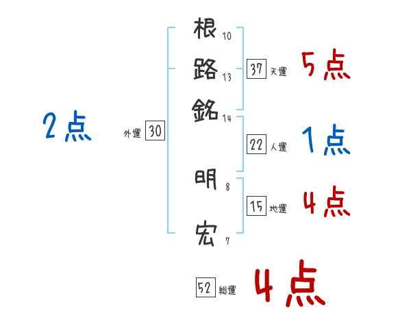 外運![]() | 根路銘明宏さんの外運は30画の2つ星!浮き沈みの激しさに注意しましょう。 生活面を象徴する運勢です。外部から受ける影響力を表し、結婚運、家庭運や職場、環境への順応性を表します。 |