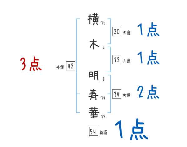 外運![]() | 横木明寿華さんの外運は42画の3つ星!病気に注意。多芸であるが消極的でおとなしい。 生活面を象徴する運勢です。外部から受ける影響力を表し、結婚運、家庭運や職場、環境への順応性を表します。 |