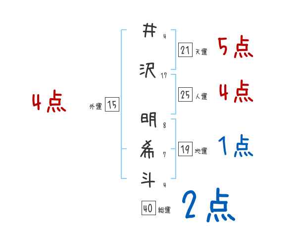 天運![]() | 井沢明希斗さんの天運は21画の5つ星!統率力がある。独立し成功する。名誉を手に入れる。 家系が持つ宿命的な運勢を表します。祖先から受け継いだ苗字ですので自分の力が及びません。家柄を象徴します。 |