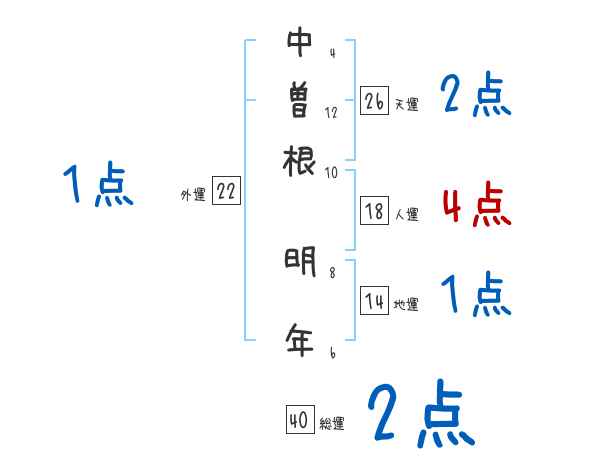 中曽根明年さんの画数の鑑定結果