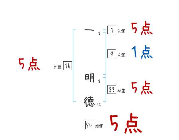 一明徳さんの画数の鑑定結果