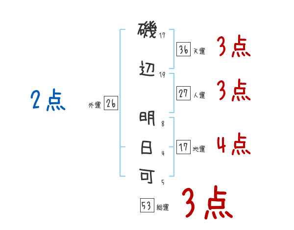 磯辺明日可さんの画数の鑑定結果