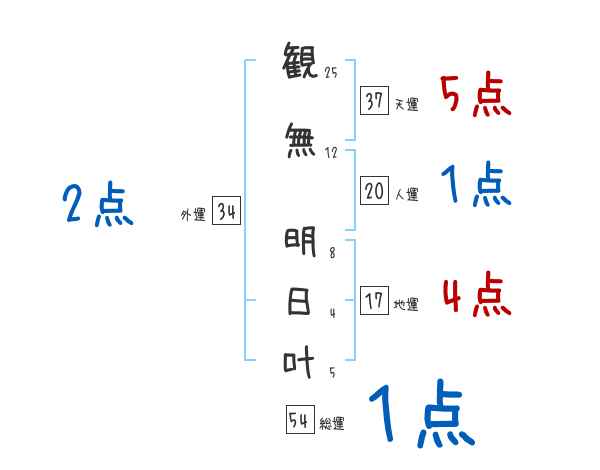 観無明日叶さんの画数の鑑定結果