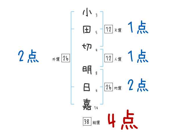 小田切明日嘉さんの画数の鑑定結果