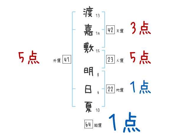 渡嘉敷明日夏さんの画数の鑑定結果
