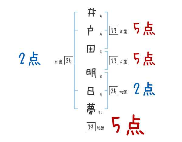 井戸田明日夢さんの画数の鑑定結果