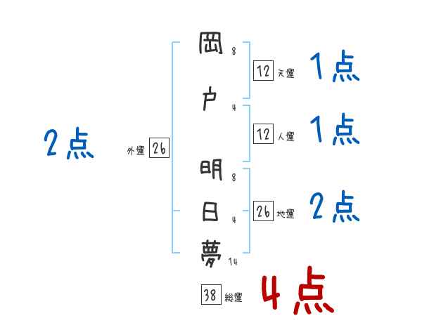 岡戸明日夢さんの画数の鑑定結果