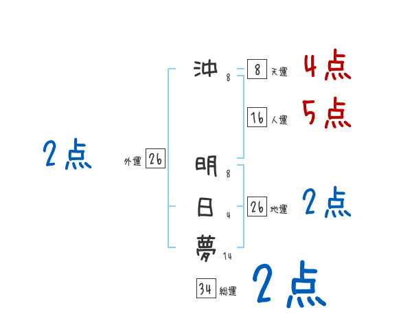 外運![]() | 沖明日夢さんの外運は26画の2つ星!波瀾万丈かも。信頼できる人を大事にしましょう。 生活面を象徴する運勢です。外部から受ける影響力を表し、結婚運、家庭運や職場、環境への順応性を表します。 |