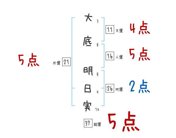 大底明日実さんの画数の鑑定結果
