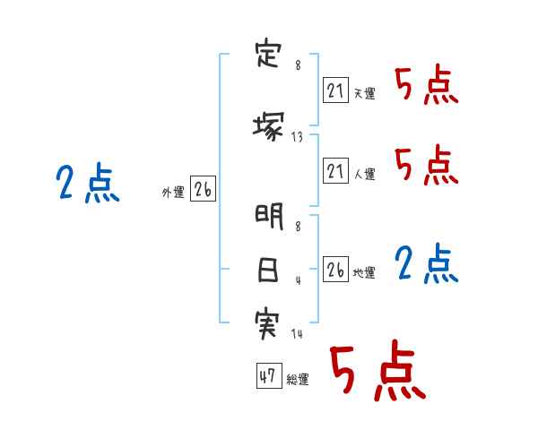 定塚明日実さんの画数の鑑定結果