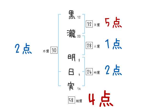 黒瀧明日実さんの画数の鑑定結果