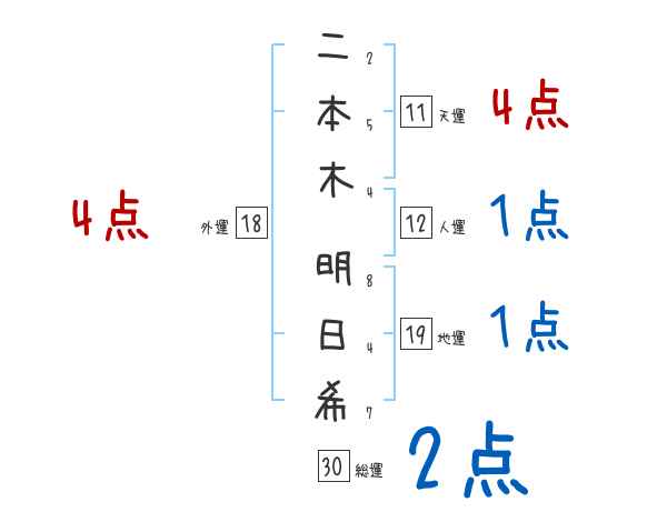 二本木明日希さんの画数の鑑定結果