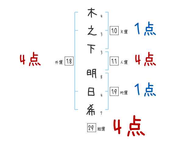 木之下明日希さんの画数の鑑定結果