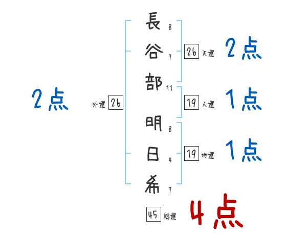 長谷部明日希さんの画数の鑑定結果