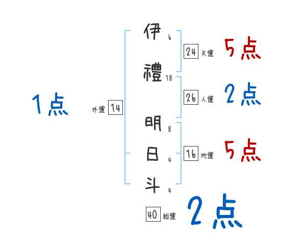 伊禮明日斗さんの画数の鑑定結果