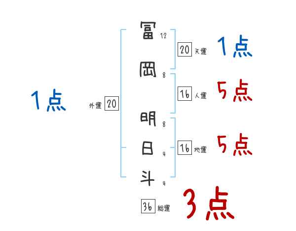 外運![]() | 冨岡明日斗さんの外運は20画の1つ星!社交が苦手。人とは違った才能があり波乱万丈な人生かも。 生活面を象徴する運勢です。外部から受ける影響力を表し、結婚運、家庭運や職場、環境への順応性を表します。 |
