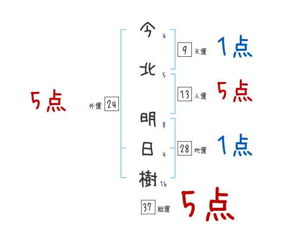 今北明日樹さんの画数の鑑定結果