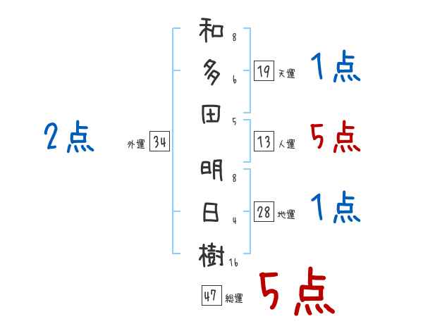 和多田明日樹さんの画数の鑑定結果