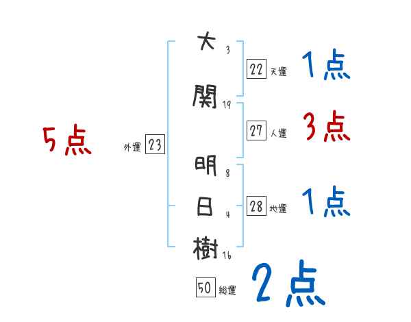 大関明日樹さんの画数の鑑定結果