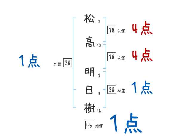 人運![]() | 松高明日樹さんの人運は18画の4つ星!情熱的で剛気。忍耐力があり信頼される。 性格や才能などを表す2番目に重要な運勢です。人間関係や協調性、社会的な成功に影響します。主に20歳から50歳ぐらいまでの中年期の運勢を表します。 |
