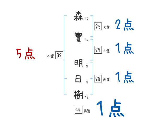 森實明日樹さんの画数の鑑定結果