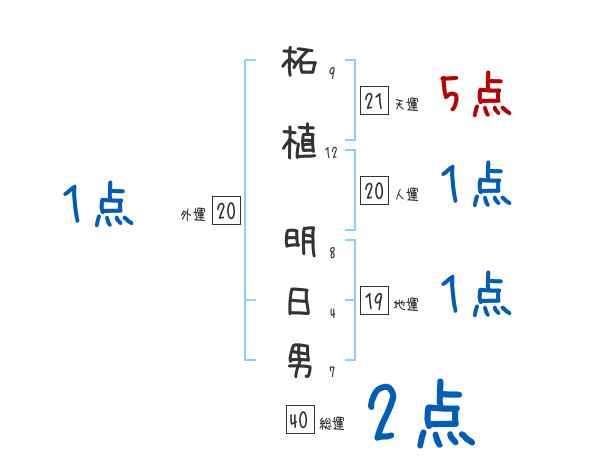 天運![]() | 柘植明日男さんの天運は21画の5つ星!統率力がある。独立し成功する。名誉を手に入れる。 家系が持つ宿命的な運勢を表します。祖先から受け継いだ苗字ですので自分の力が及びません。家柄を象徴します。 |