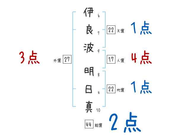 地運![]() | 伊良波明日真さんの地運は22画の1つ星!努力することが苦手ないっぽう手先が器用。芸術性にも優れる。 個性を表す基礎的な運勢です。性格形成や対人関係、行動力など家庭環境に影響されます。主に誕生してから20歳くらいまでの若年期の運勢を表します。 |