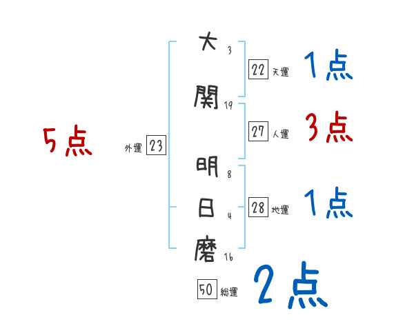 天運![]() | 大関明日磨さんの天運は22画の1つ星!努力することが苦手ないっぽう手先が器用。芸術性にも優れる。 家系が持つ宿命的な運勢を表します。祖先から受け継いだ苗字ですので自分の力が及びません。家柄を象徴します。 |