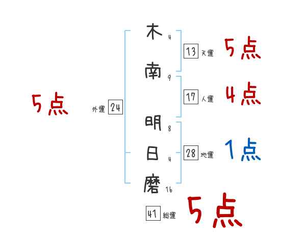 木南明日磨さんの画数の鑑定結果