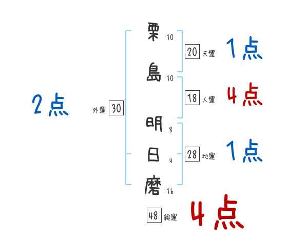 栗島明日磨さんの画数の鑑定結果